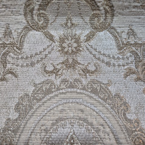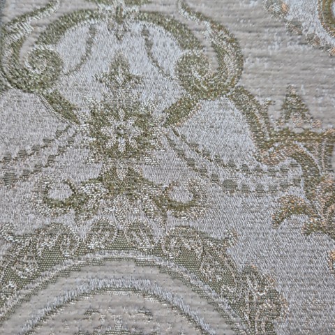 Tkanina AMBIENTE ornamenty to tkanina o szerokości 140cm, to kwintesencja klasycznej elegancji, która zachwyca przepięknym, misternym wzorem ornamentów w szenilowym wykończeniu. Centralnym punktem kompozycji jest finezyjna lilijka, osadzona w owalu, co nadaje tkaninie wyrafinowanego, królewskiego charakteru. Wykonana z wysokiej jakości szenilu, tkanina ta nie tylko przyciąga wzrok swoim bogactwem wzorów, ale również zachwyca niezwykłą miękkością w dotyku. Srebrne lub złote akcenty subtelnie podkreślają luksusowy styl, czyniąc AMBIENTE idealnym wyborem do wnętrz, w których króluje elegancja i klasyka.