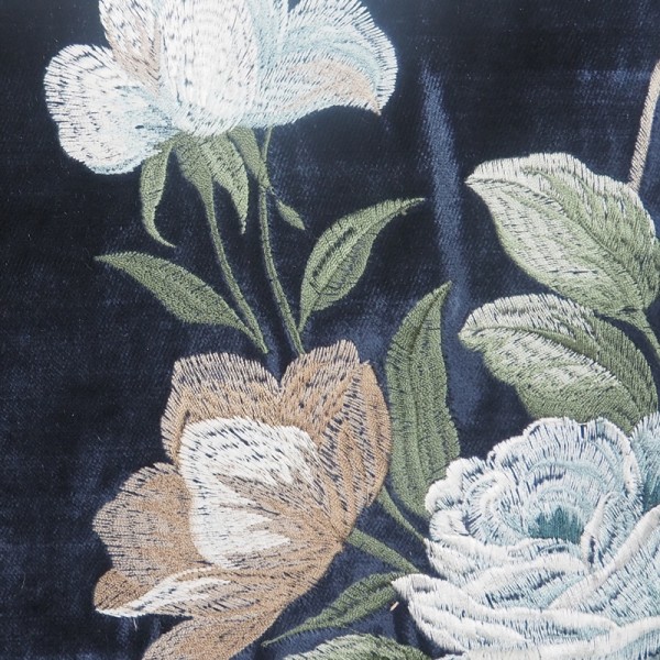 • Bogato haftowane kwiaty – pełne detali wzory kwiatowe dodające tkaninie luksusowego charakteru.