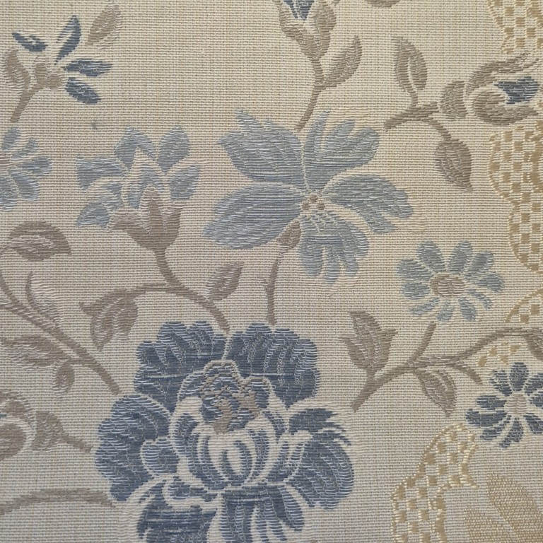 Głównym motywem kolekcji są kwiaty zdobione złotymi akcentami, które subtelnie oplatają wzór, tworząc ornamentowe kompozycje na matowym, naturalnym podkładzie. To połączenie klasyki i luksusu, które nadaje wnętrzom wyjątkowego charakteru.